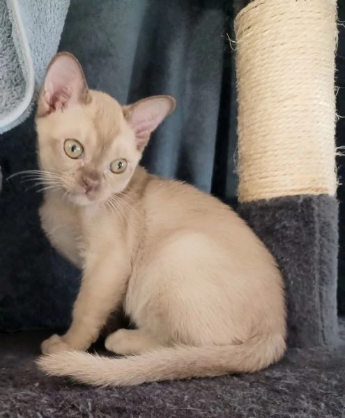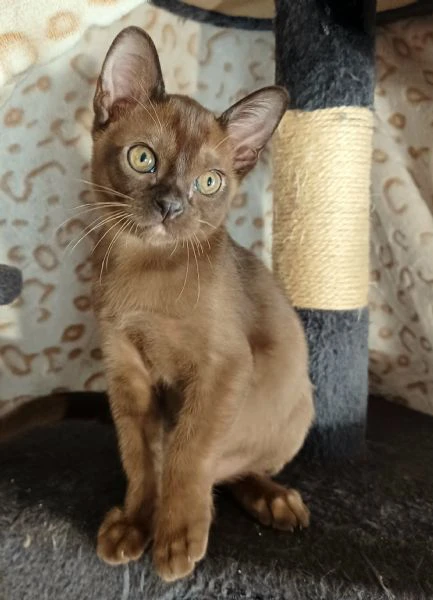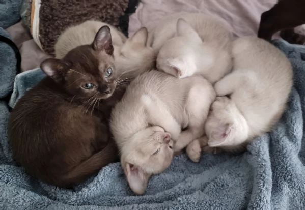 vendo gattini burmesi europei colore chocolate brown e sable, i genitori hanno fiv/felv negativi con ottimi pedigree, la mamma color cioccolato, il padre color lilla. sono nati 12.08.2025.